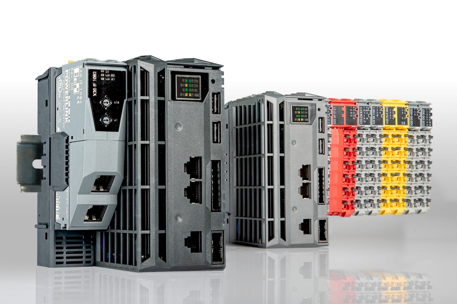 I dispositivi sono dotati di interfacce hardware per POWERLINK e RS485. L’interfaccia RS485 può essere utilizzata per collegare un convertitore di frequenza direttamente al PLC senza hardware aggiuntivo. Anche l’alimentatore è integrato. I PLC non richiedono ventole o batterie, il che li rende completamente esenti da manutenzione.