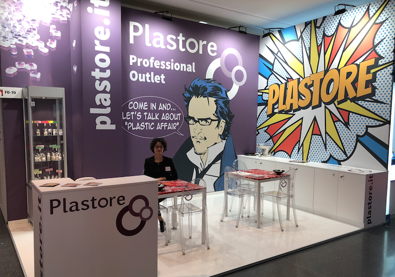 Invitandoci ad entrare da un balloon posizionato a circa due metri di altezza, ci avvisa che lì si parla di “Plastic Affaire”, core business della nota manifestazione fieristica tedesca ma anche dell’azienda di cui Mr. Plastore porta il nome.
