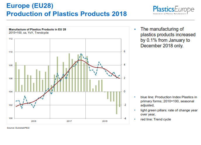 Nonostante tutto questo, Philip Law, direttore generale della Federazione britannica della Plastica, ad aprile affermava di essere “molto ottimista” riguardo alle prospettive a lungo temine dell’industria della plastica nel Regno Unito. “C’è sempre una qualche difficoltà nel mondo degli affari, ma la nostra abilità essenziale consiste nel trovare le opportunità per risolvere i problemi,” sosteneva. La saga della Brexit ha aiutato molti a colmare il vuoto lasciato in televisione dal Trono di spade, con molti attori chiave caduti sotto i suoi colpi. Law ha affermato che la Brexit rischia di trasformarsi in un “calvario nazionale”. “Le aziende britanniche sono diventate, ragionevolmente, più caute ed evitano mosse ardite, ma ci sono molti altri fattori che causano incertezza per l’industria della plastica a livello mondiale – le tensioni commerciali tra Cina e USA, i rallentamenti in Cina e in Germania e i travagli dell’industria aerospaziale”, ha aggiunto. Tuttavia, egli ne ha dato un’immagine molto positiva. “Per quanto riguarda il Regno Unito dobbiamo guardare ai fondamentali, che continueranno a stimolare il successo dell’industria della plastica verso nuovi traguardi nei prossimi decenni. Disponiamo di una forte piattaforma di produzione e distribuzione delle materie prime (…) e abbiamo un’industria del riciclaggio dinamica. Esistono tutti i presupposti per un’economia circolare.”