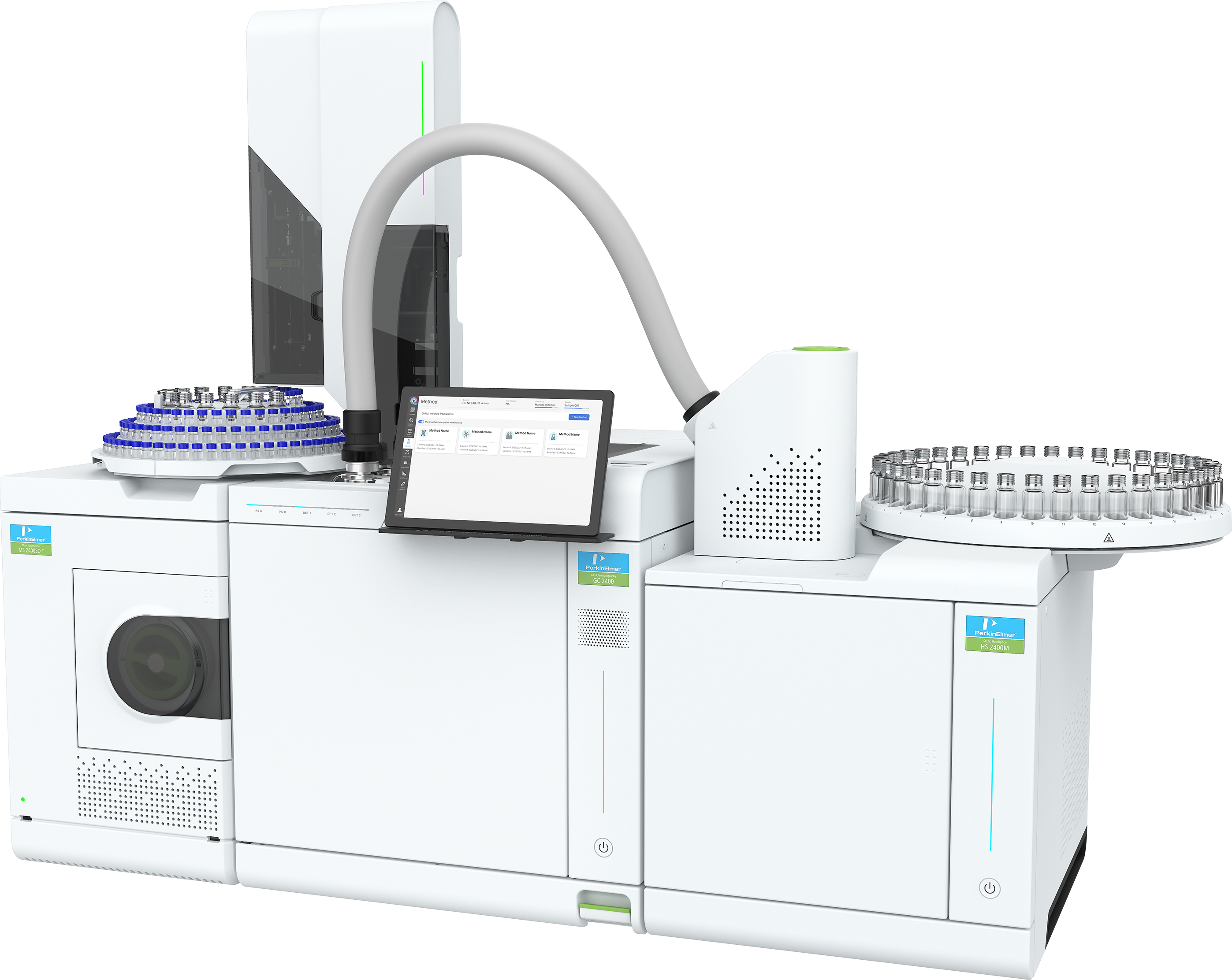 Il monitoraggio di sistemi GC 2400 singoli o multipli all’interno o all’esterno del laboratorio è reso semplice grazie all’interfaccia tablet wireless con l’applicazione PerkinElmer Simplicity Vision™.